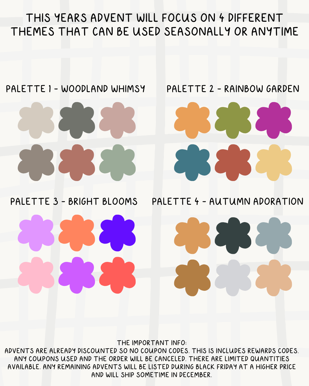 Choose your option: Full advent (24 days) or Mini advent (12 days).