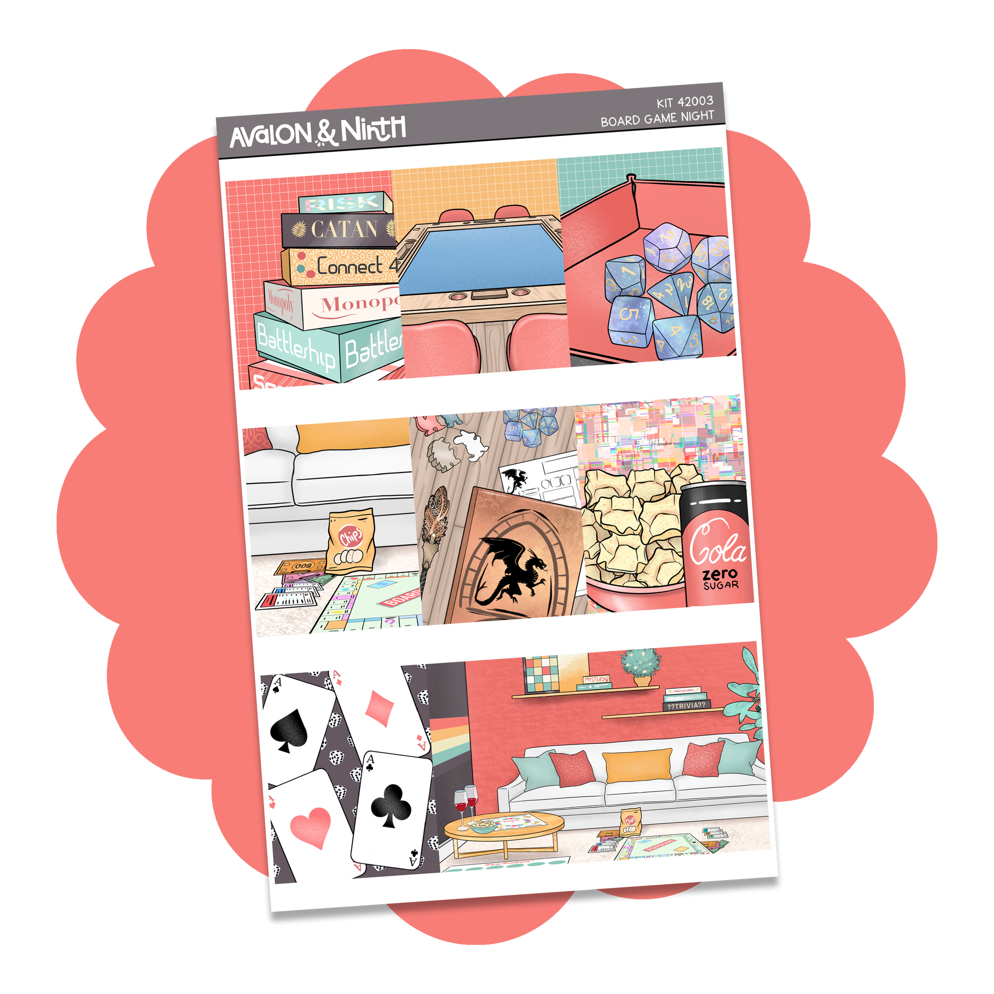 Board Game Night is an 8-page kit. Buy the sheets you need or the full kit.