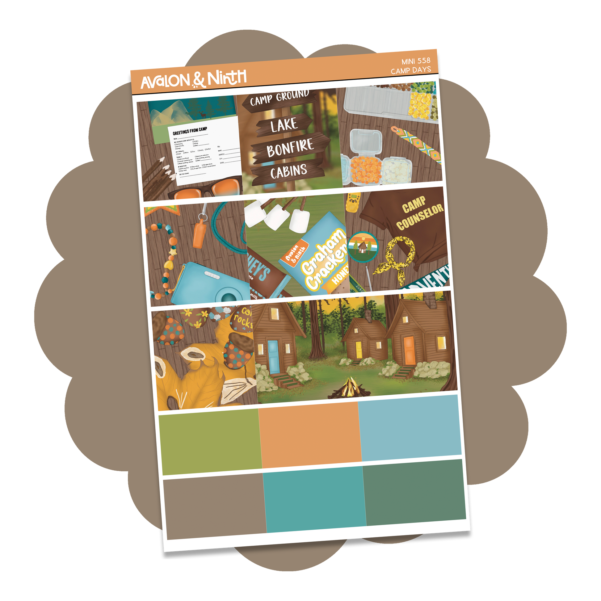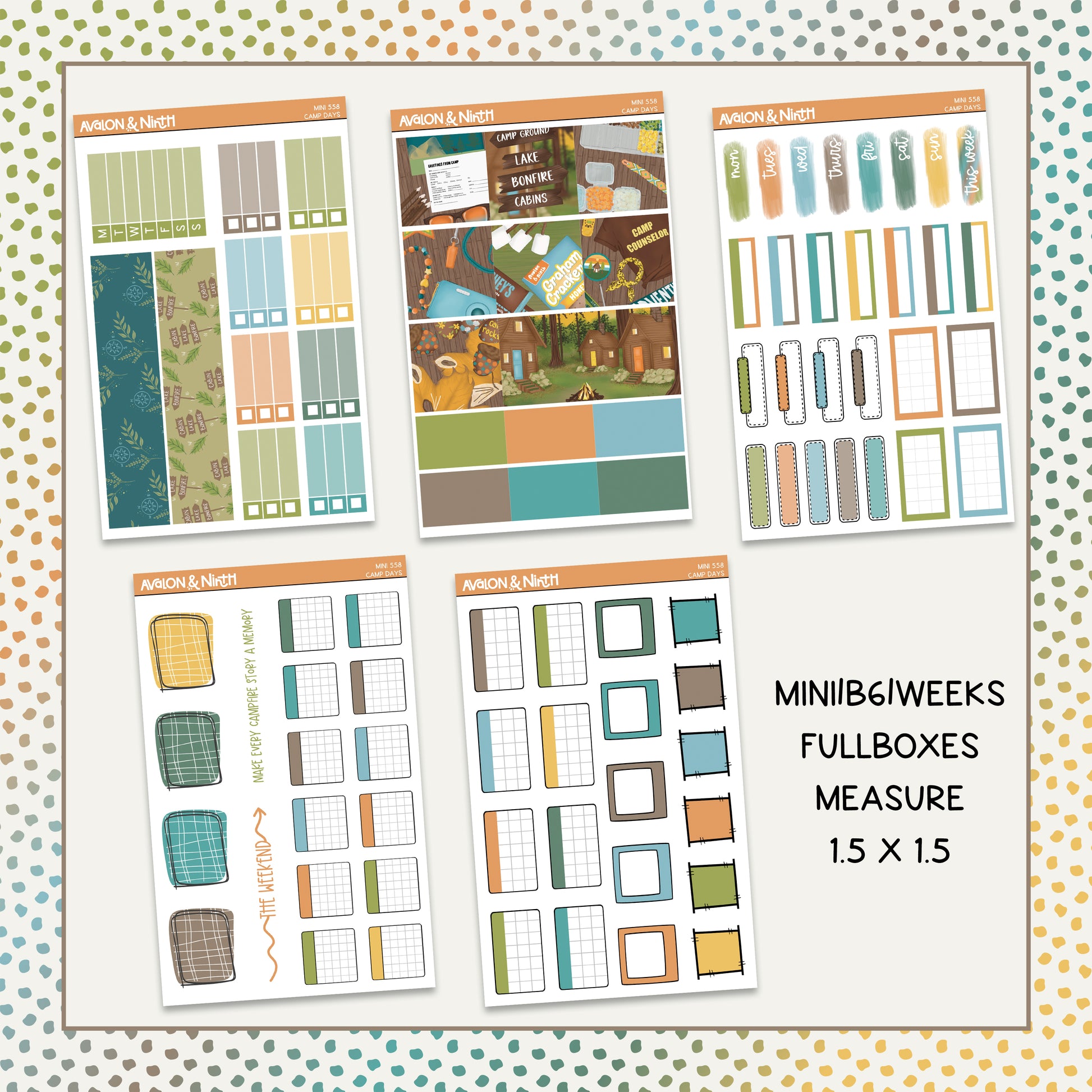 Camp Days is a 5-page exclusive art mini kit that is designed for a number of planners. The fullboxes measure 1.5 x 1.5 and are perfect for academic planners, weeks planners, daily planners, standard vertical planners, B6 planners, and more. Buy the sheets you need or the full kit.