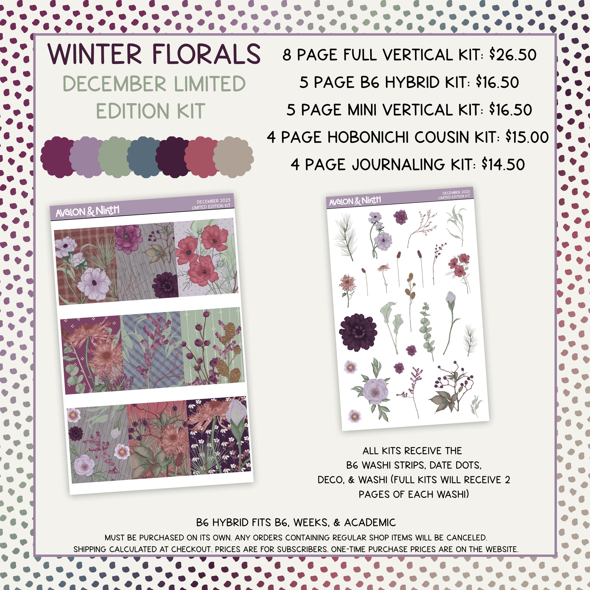 B6 Hybrid kit ($16.50): This is a 5-page kit format. The format is based on our current B6 Hybrid kits that you can get in the shop. This format fits a wide range of planners from Weeks, B6, and Academic.