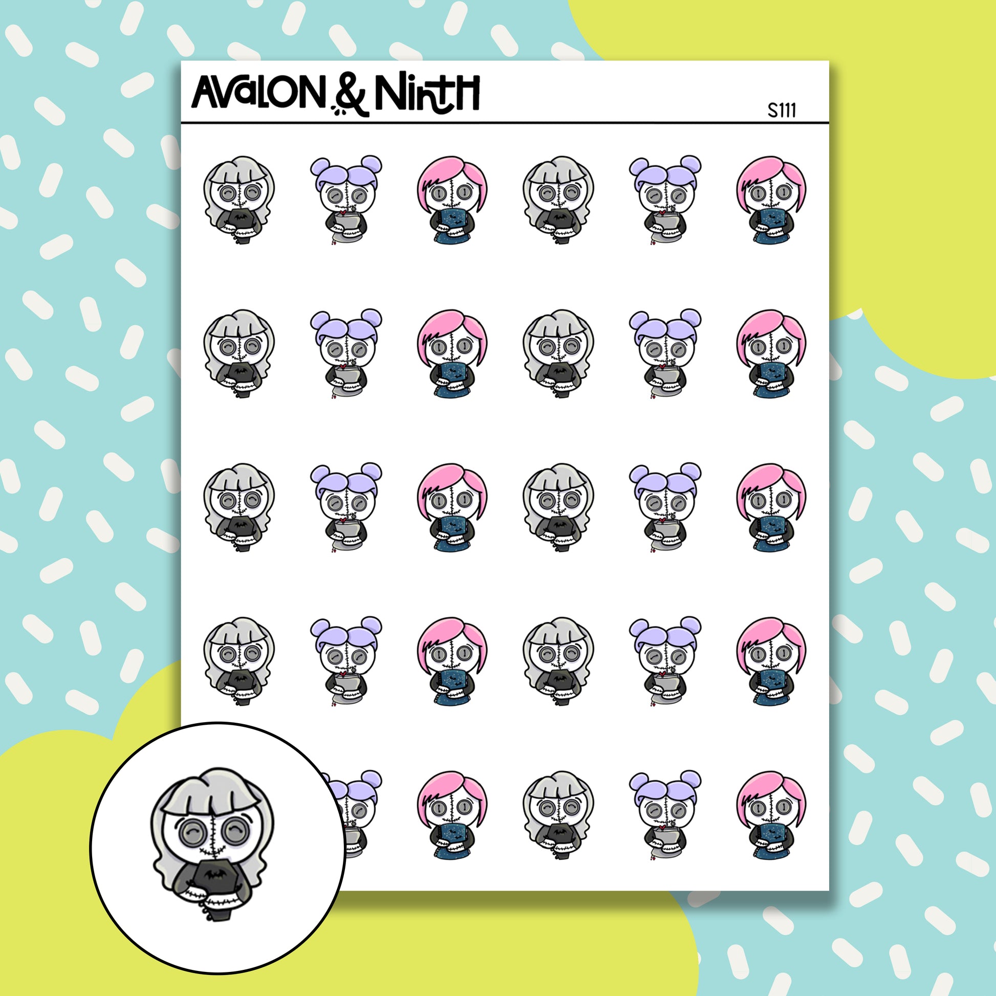 Each sheet comes with 30 stickers that measure ~.6 in height.