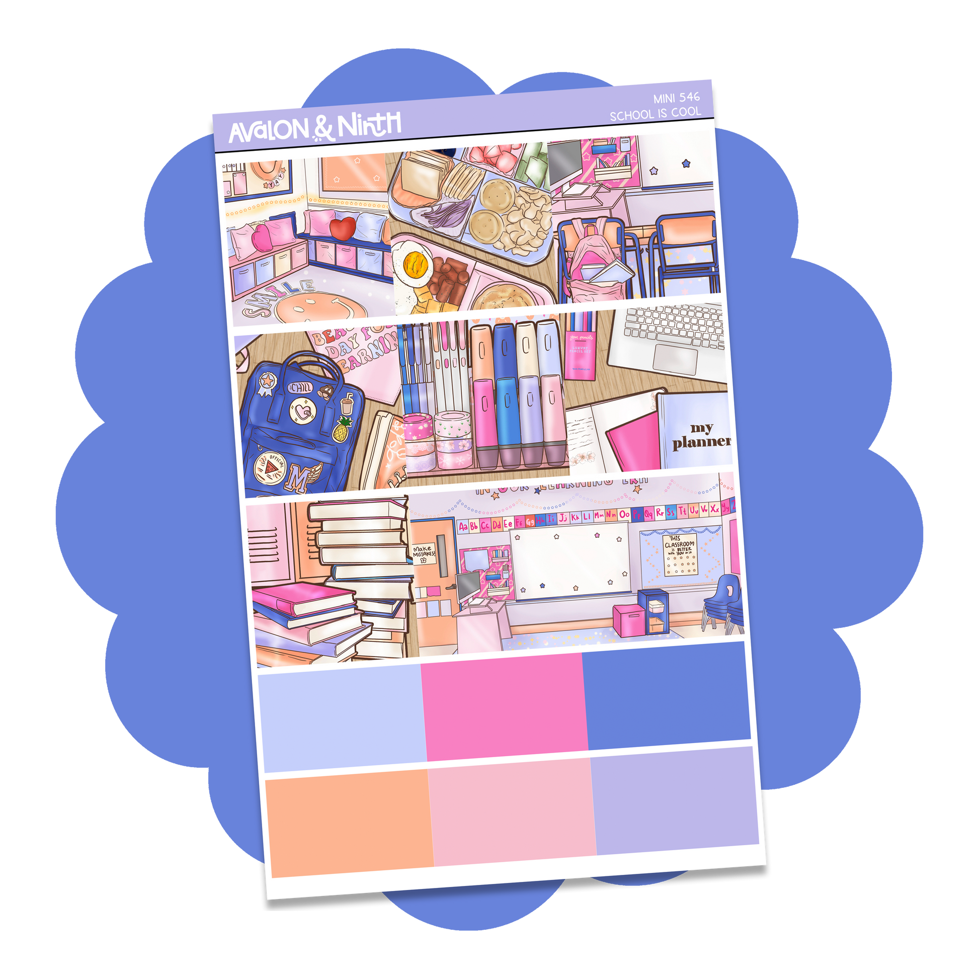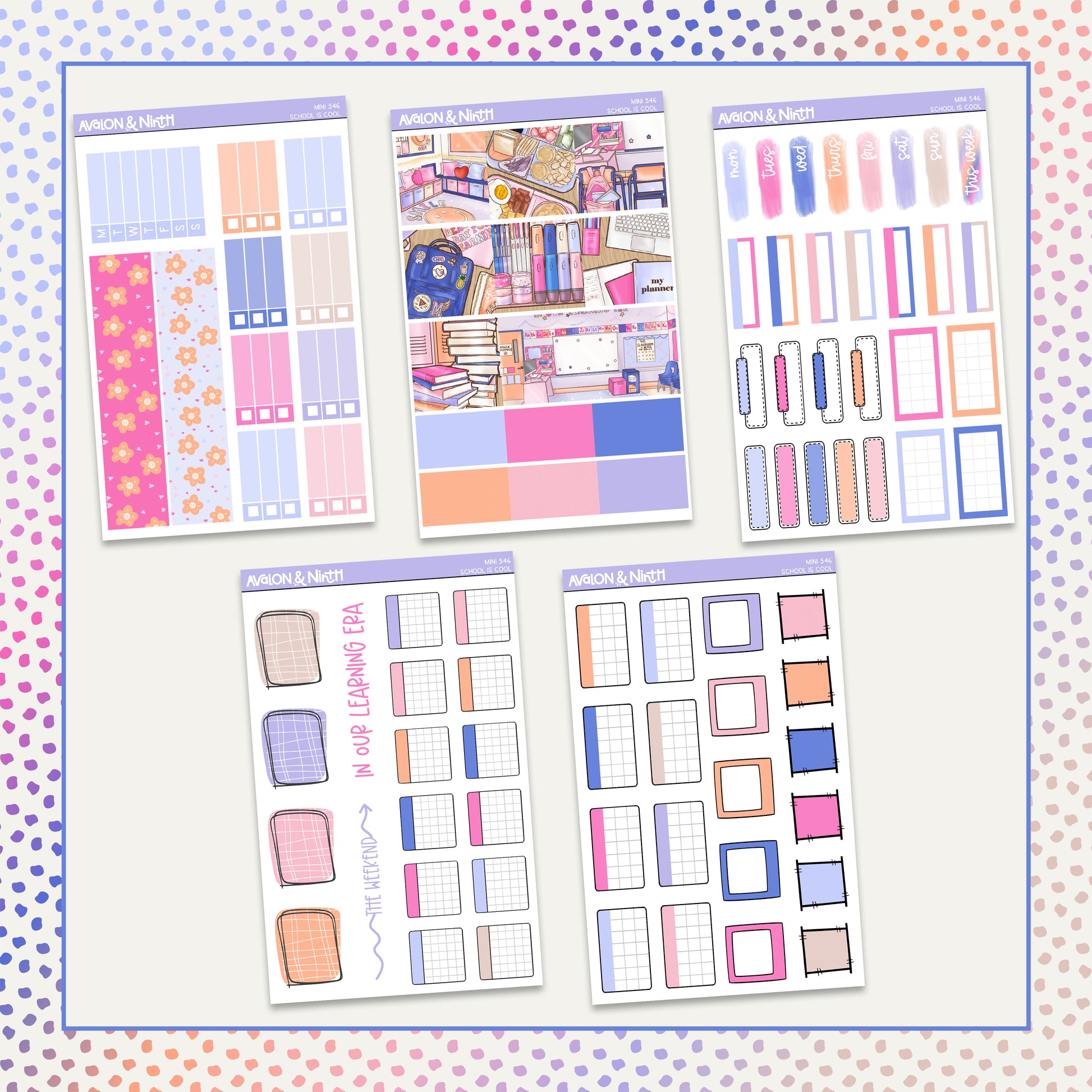School Is Cool is a 5-page mini kit that is designed for a number of planners. The fullboxes measure 1.5 x 1.5 and are perfect for academic planners, weeks planners, daily planners, standard vertical planners, B6 planners, and more. Buy the sheets you need or the full kit.